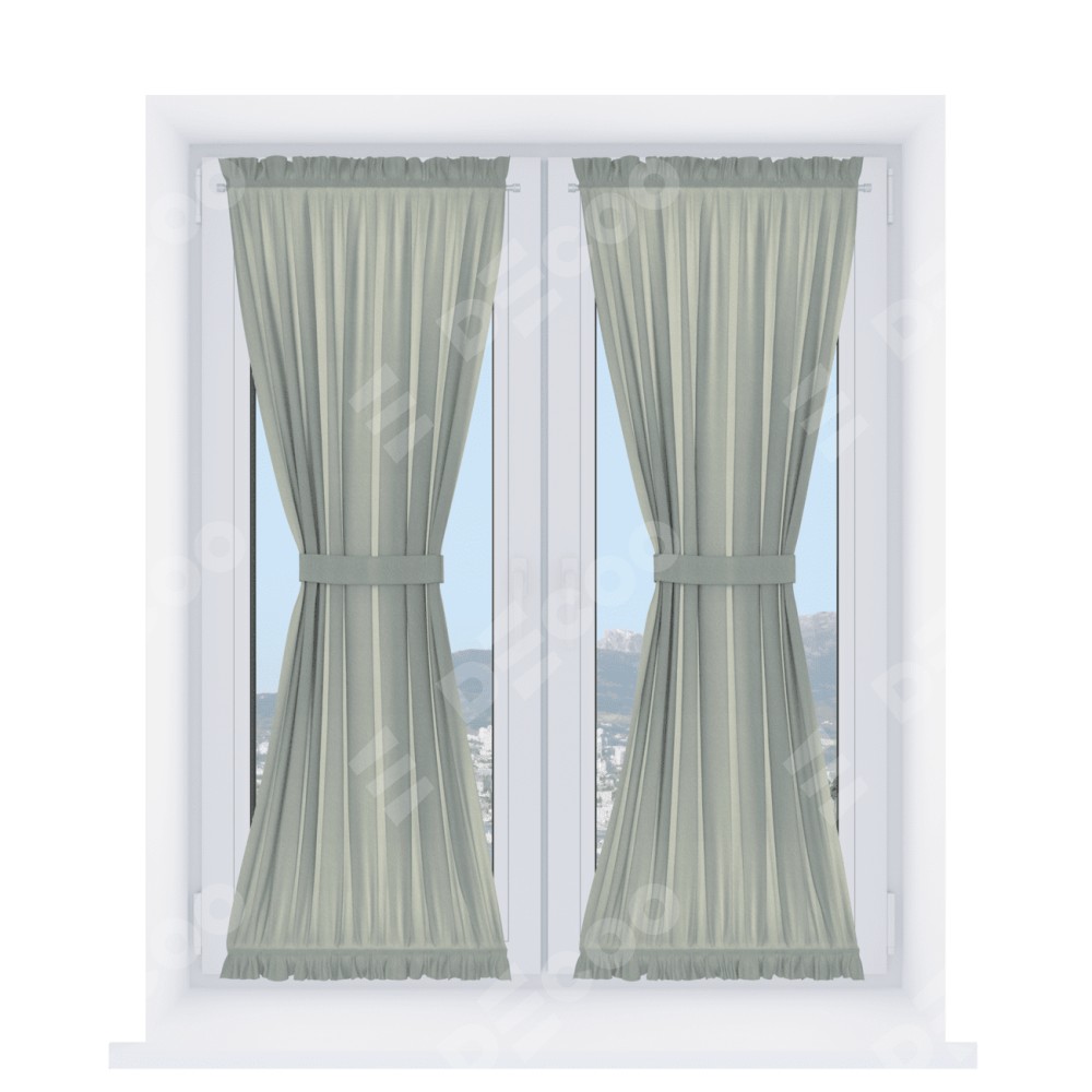 Штора «Песочные часы» производителя «Cortin», используется для створок окон и дверей, пошита из ткани лён димаут серый, артикул ткани Ф3.