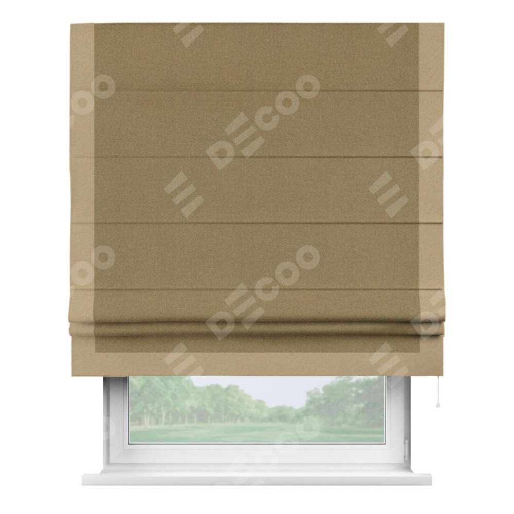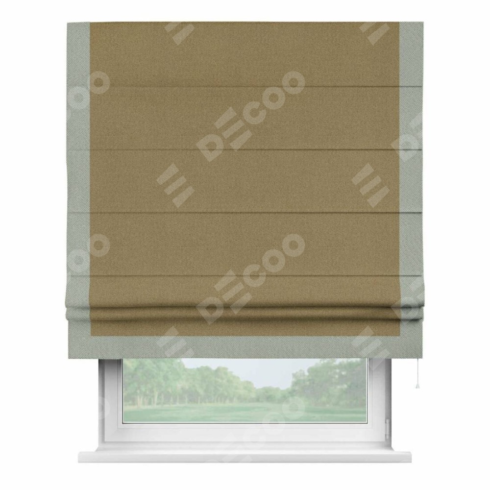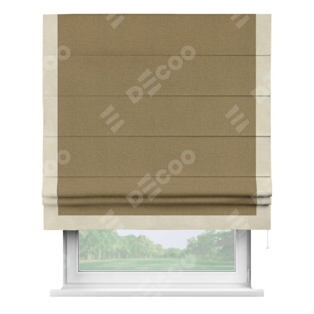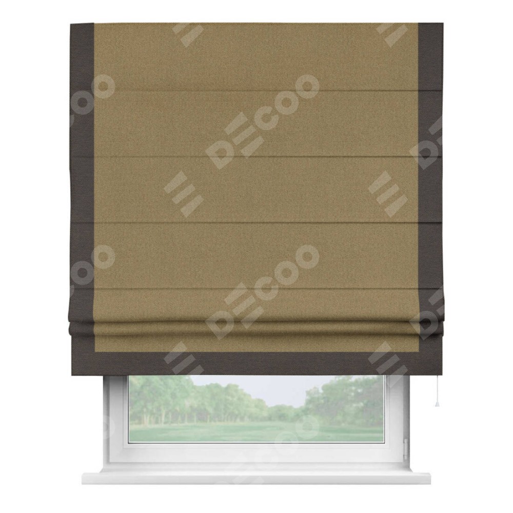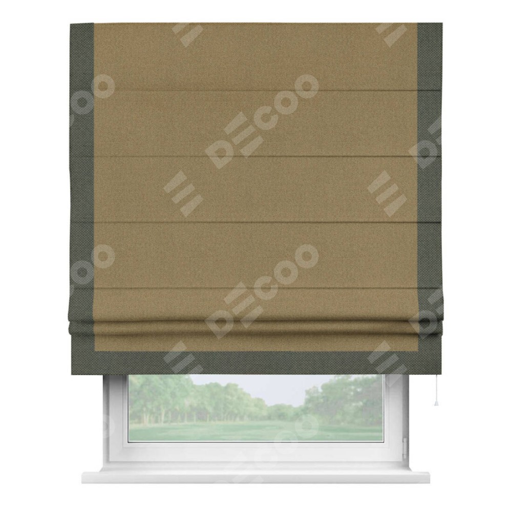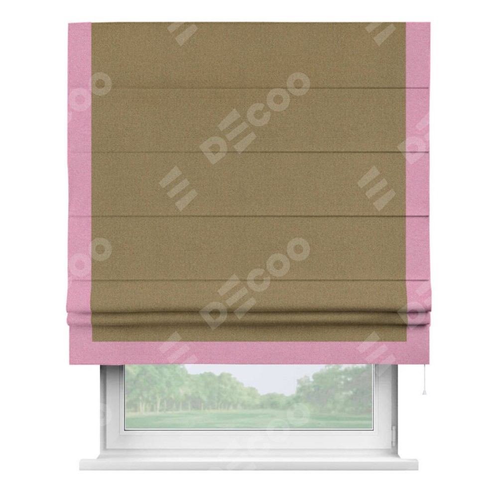 Римская штора «Кортин» с кантом Виктория, для проема, ткань лён димаут, оливковый
