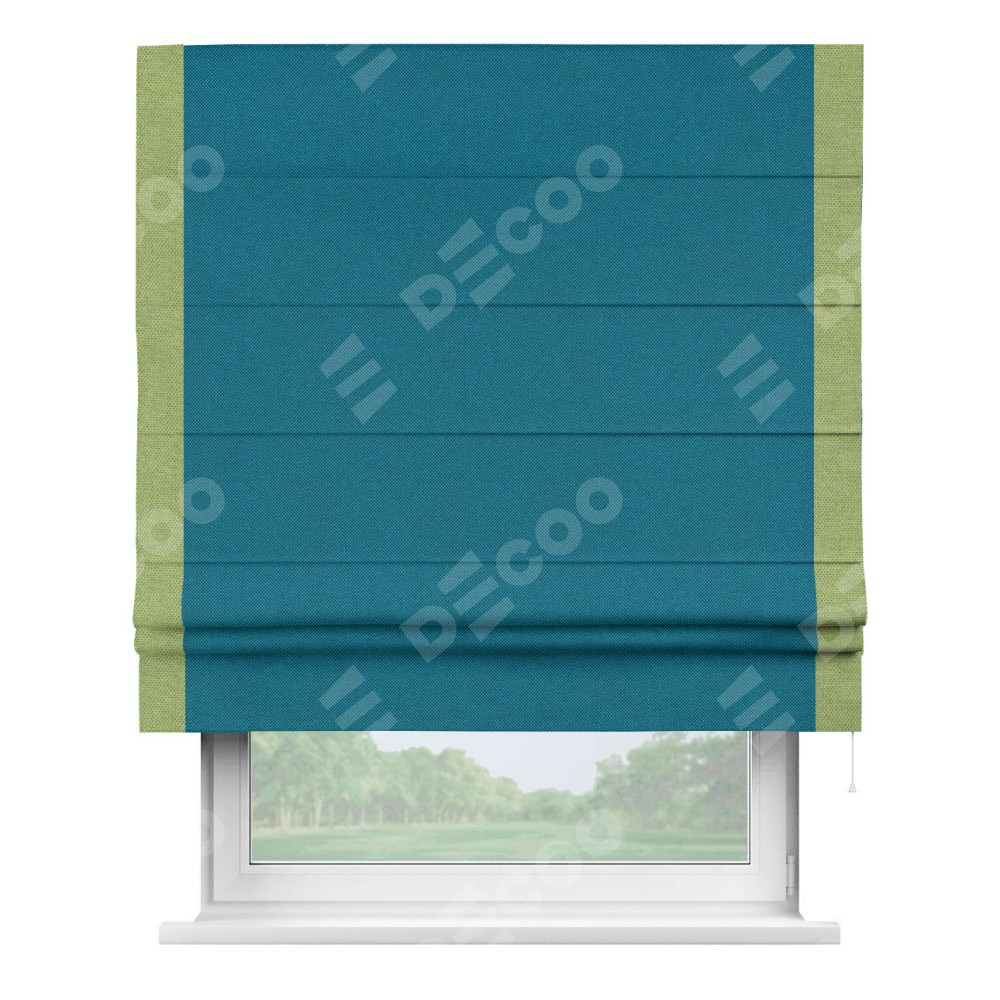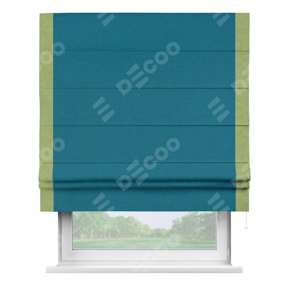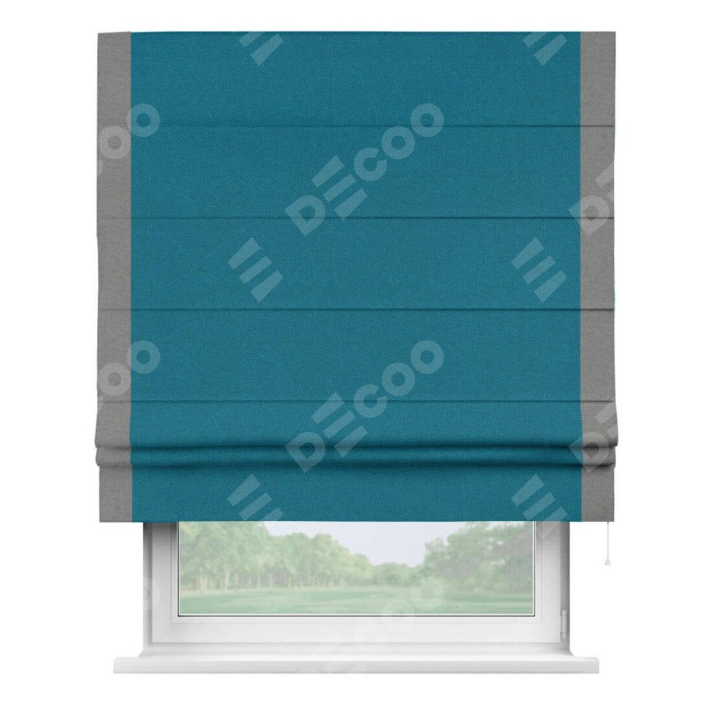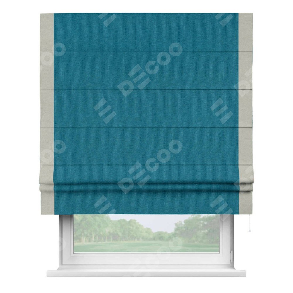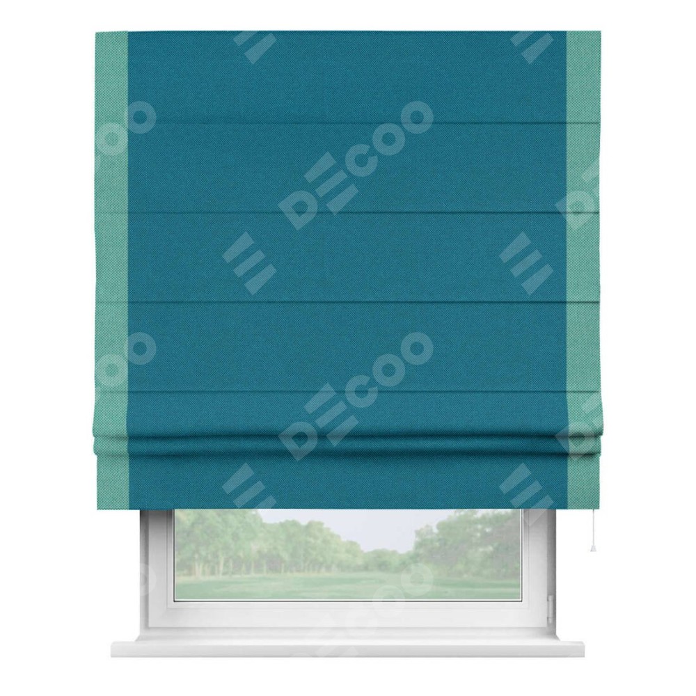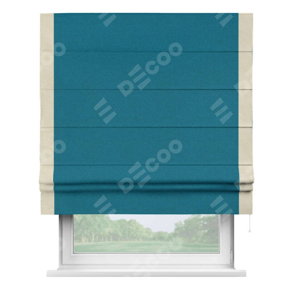 Римская штора «Кортин» с кантом Стрим Дуо, для проема, ткань лён димаут, светло-синий