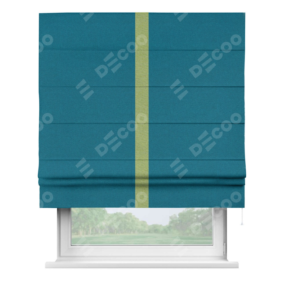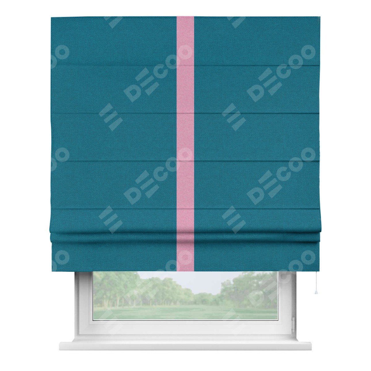 Римская штора производителя «Cortin», используется для проёма, пошита из ткани лён димаут светло-синий, артикул 02. Отделка шторы кантом «Хайвэй», ткань для канта используется из льна димаут разной расцветки на выбор. Имеет универсальный механизм и подходит для монтажа: на потолок, на стену и в нишу.