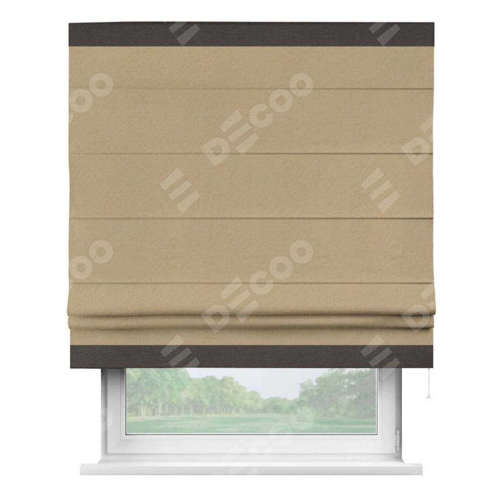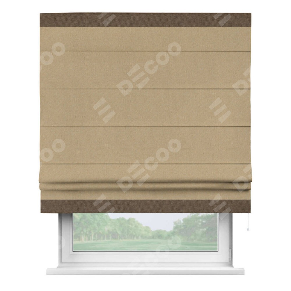 Римская штора «Кортин» с кантом Горизонт, для проема, ткань лён димаут, тёмно-бежевый