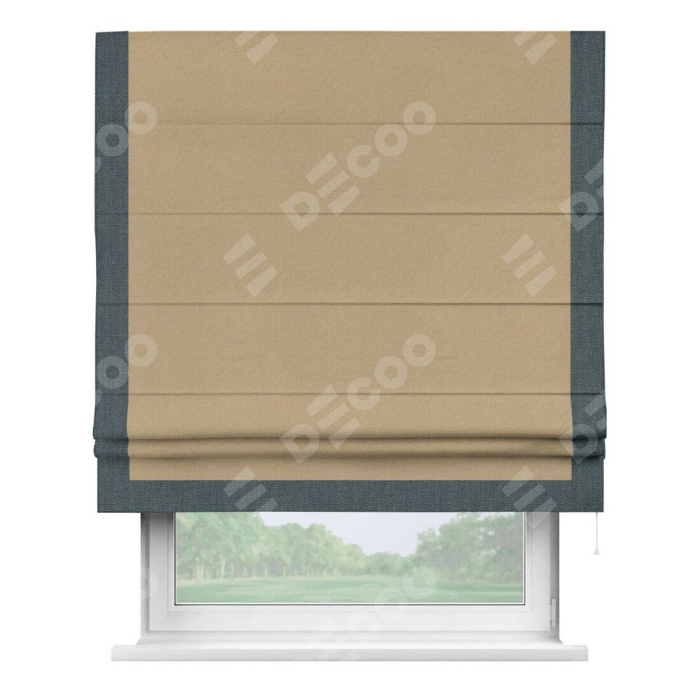 Римская штора производителя «Cortin», используется для проёма, пошита из ткани лён димаут тёмно-бежевый, артикул 83037. Отделка шторы кантом «Виктория», ткань для канта используется из льна димаут разной расцветки на выбор. Имеет универсальный механизм и подходит для монтажа: на потолок, на стену и в нишу.