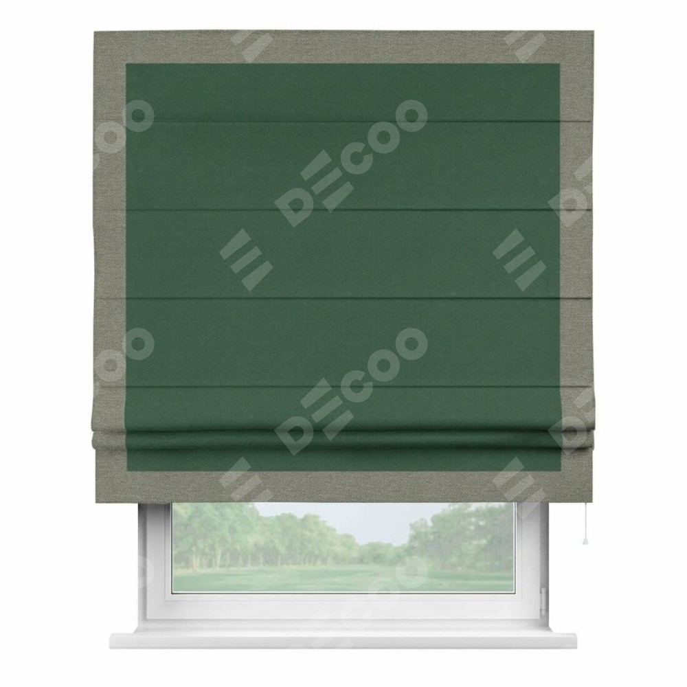 Римская штора «Кортин» с кантом Чесс, для проема, ткань лён димаут, тёмно-зелёный