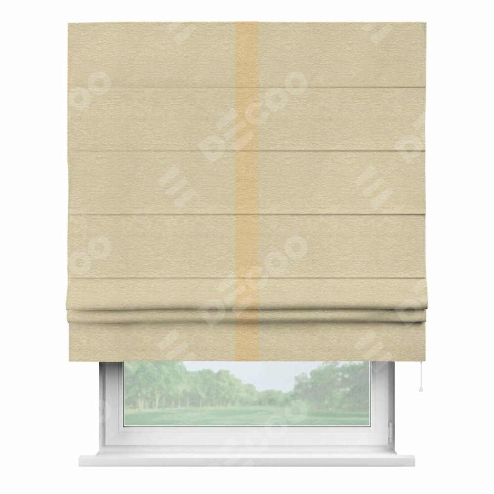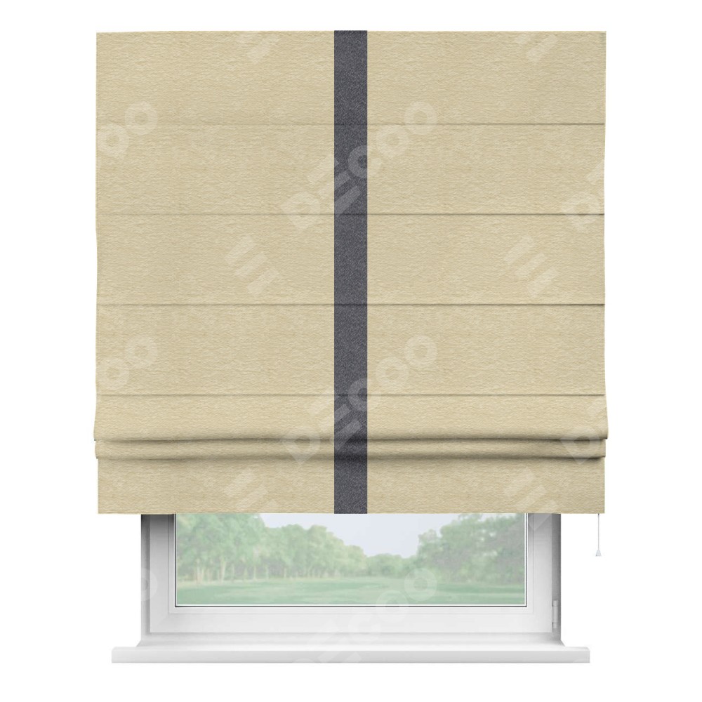 Римская штора производителя «Cortin», используется для проёма, пошита из ткани софт однотонный светло-бежевый, артикул 54426. Отделка шторы кантом «Хайвэй», ткань для канта используется из софта разной расцветки на выбор. Имеет универсальный механизм и подходит для монтажа: на потолок, на стену и в нишу.