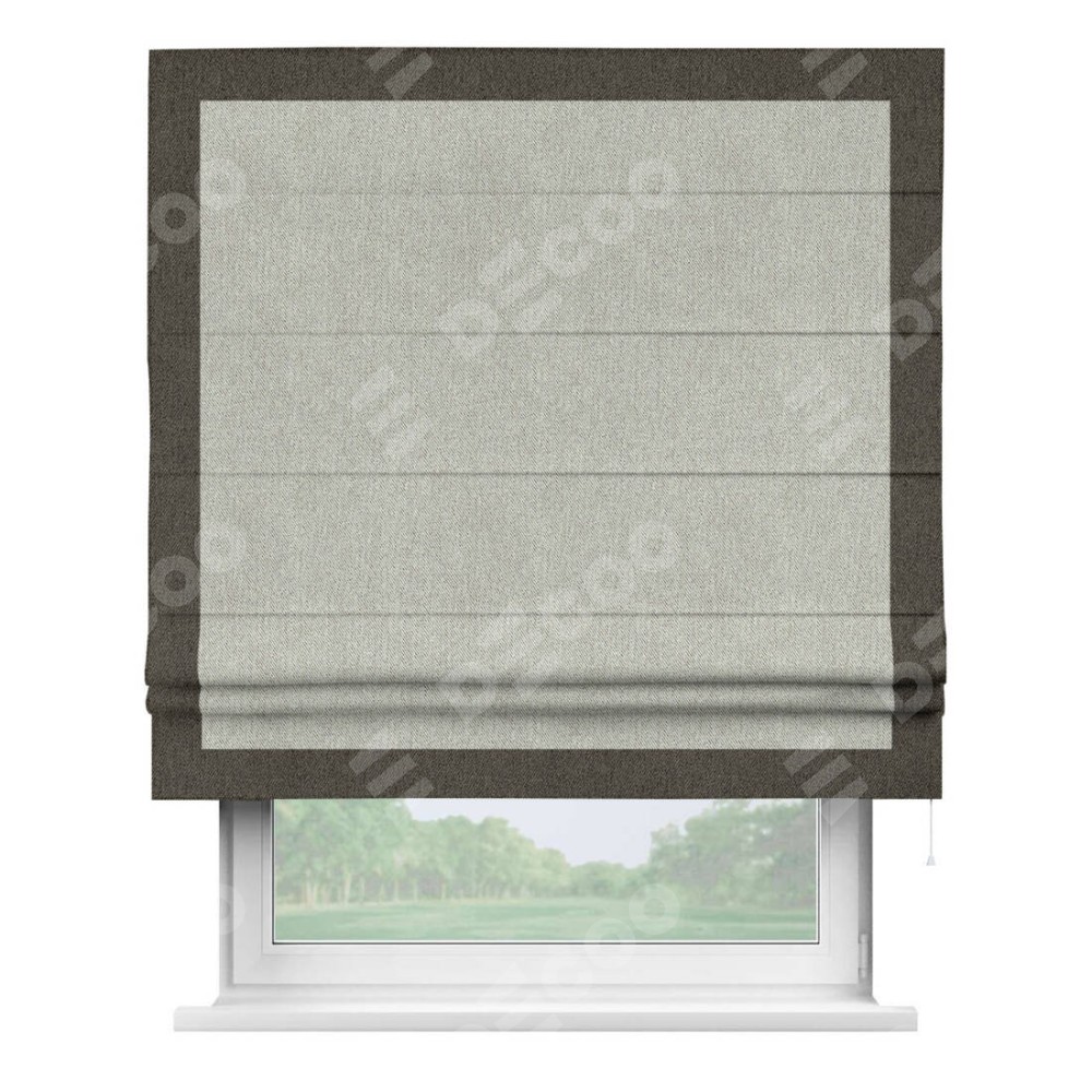 Римская штора «Кортин» с кантом Чесс, для проема, ткань твид блэкаут, коричнево-серый