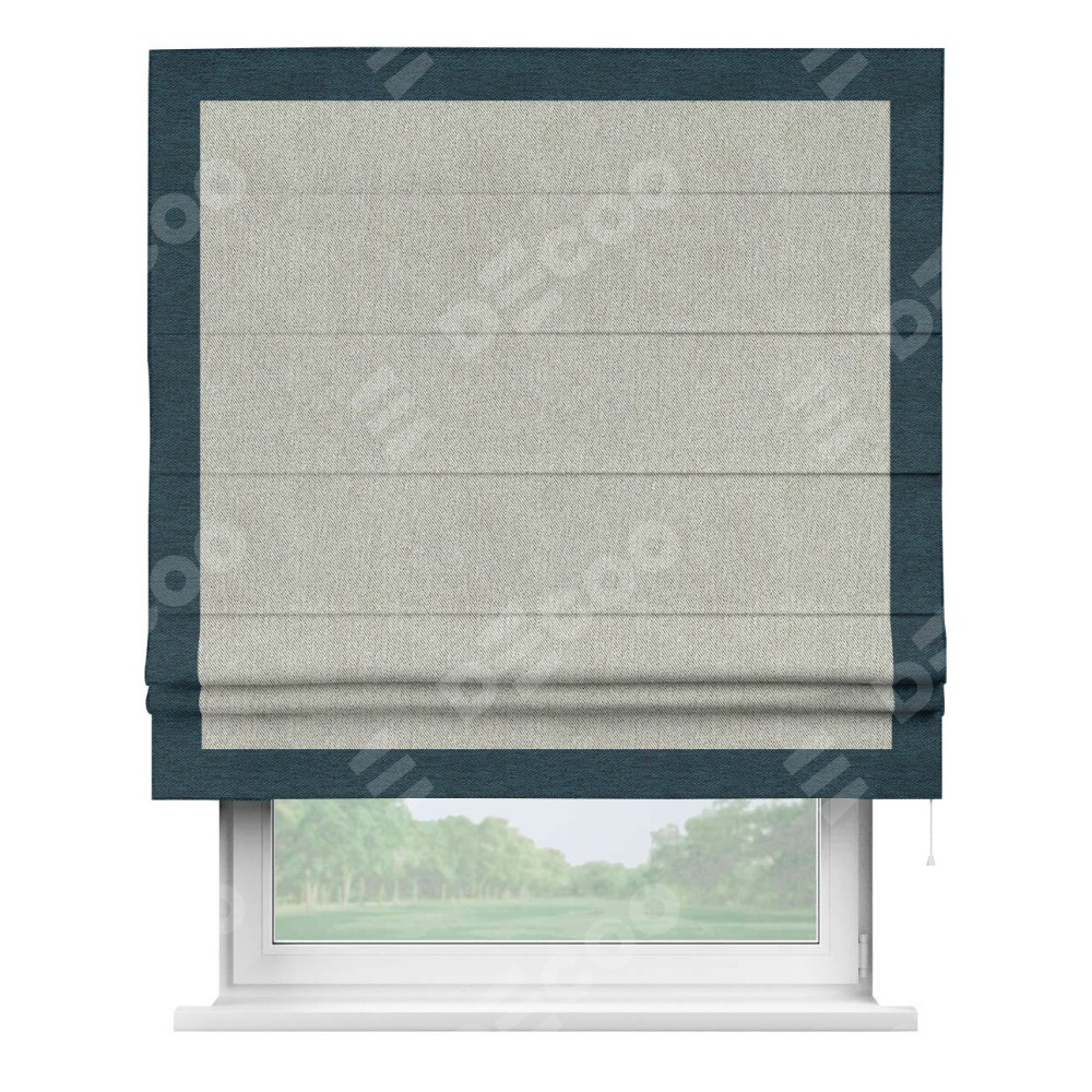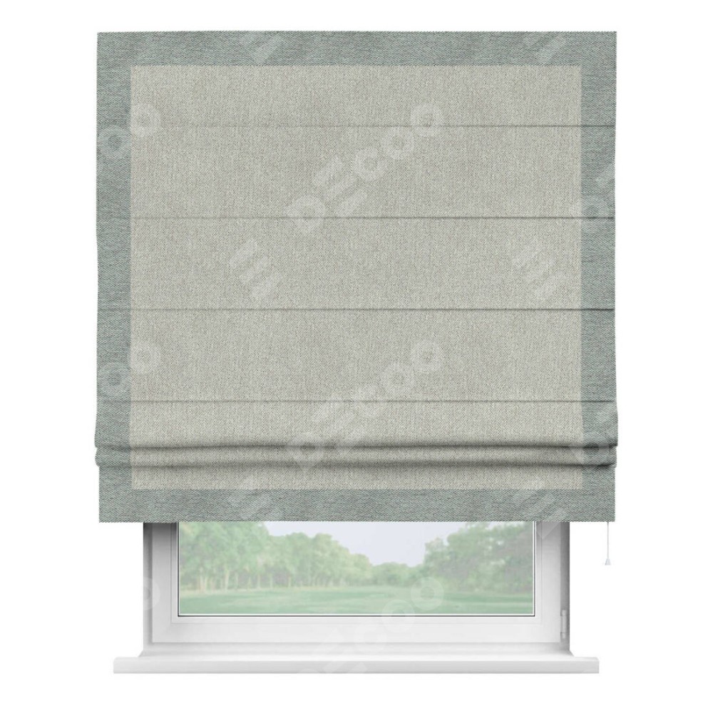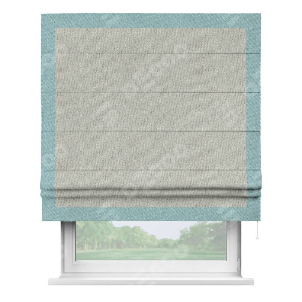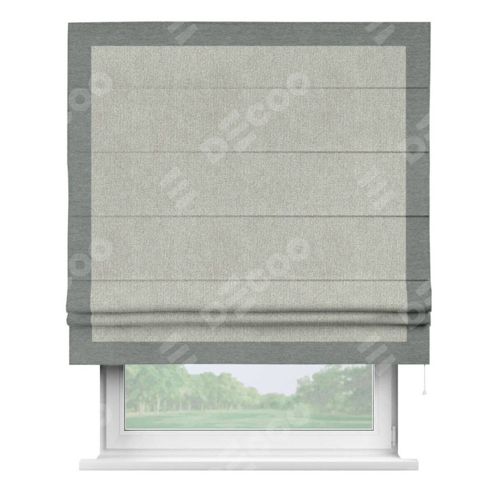 Римская штора производителя «Cortin», используется для проёма, пошита из ткани твид блэкаут коричнево-серый, артикул 21574. Отделка шторы кантом «Чесс», ткань для канта используется из твида разной расцветки на выбор. Имеет универсальный механизм и подходит для монтажа: на потолок, на стену и в нишу.