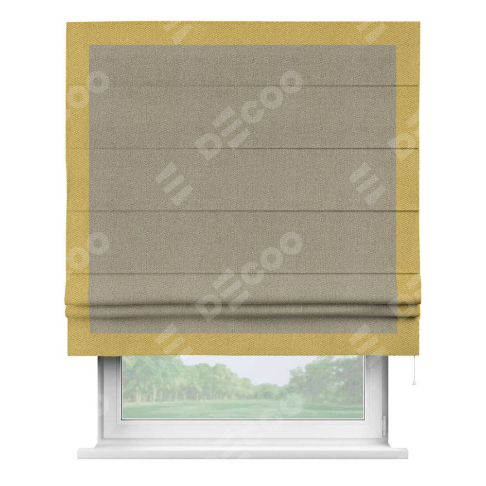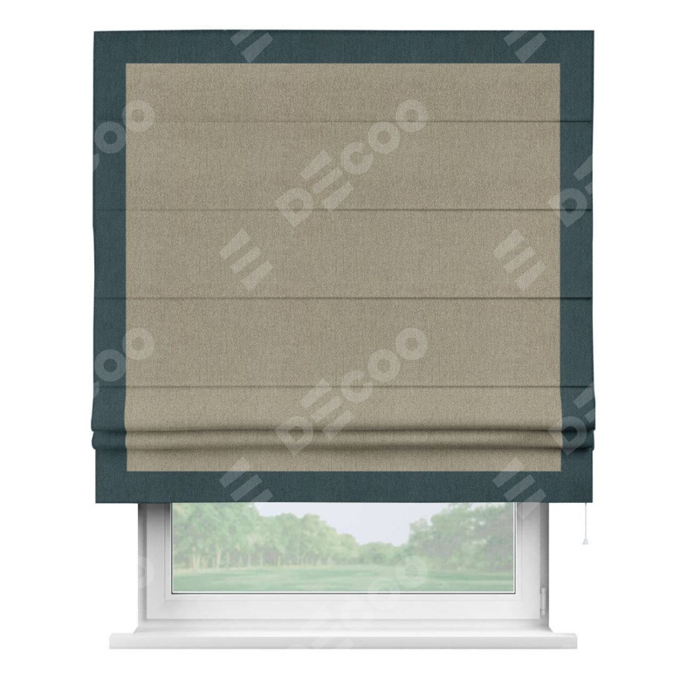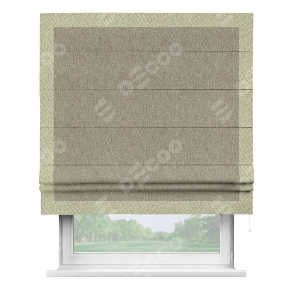 Римская штора производителя «Cortin», используется для проёма, пошита из ткани твид блэкаут кофе, артикул 21575. Отделка шторы кантом «Чесс», ткань для канта используется из твида разной расцветки на выбор. Имеет универсальный механизм и подходит для монтажа: на потолок, на стену и в нишу.