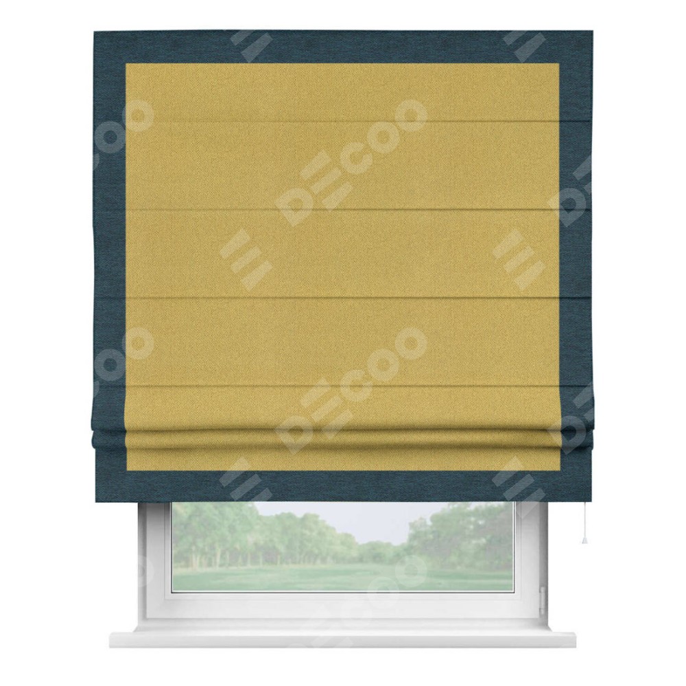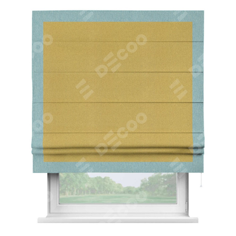 Римская штора «Кортин» с кантом Чесс, для проема, ткань твид блэкаут, пыльная горчица