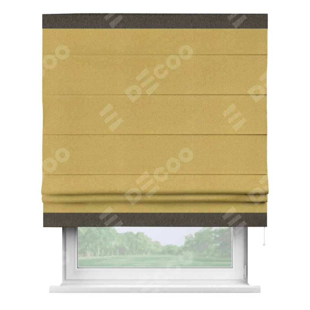 Римская штора «Кортин» с кантом Горизонт, для проема, ткань твид блэкаут, пыльная горчица