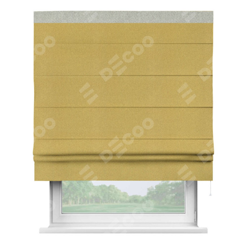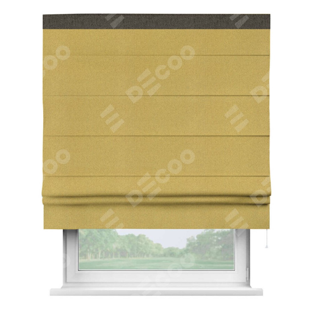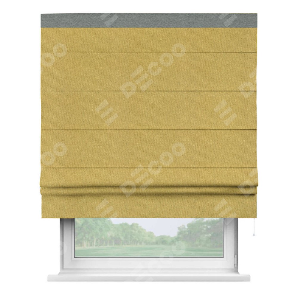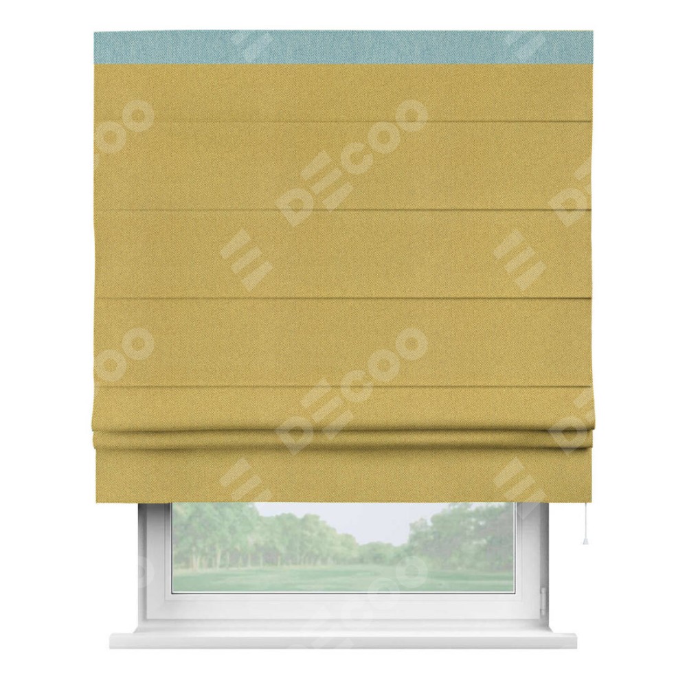 Римская штора производителя «Cortin», используется для проёма, пошита из ткани твид блэкаут пыльная горчица, артикул 21588. Отделка шторы кантом «Кинг», ткань для канта используется из твида разной расцветки на выбор. Имеет универсальный механизм и подходит для монтажа: на потолок, на стену и в нишу.