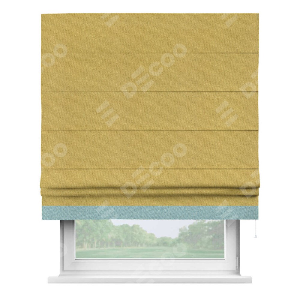 Римская штора производителя «Cortin», используется для проёма, пошита из ткани твид блэкаут пыльная горчица, артикул 21588. Отделка шторы кантом «Джестер», ткань для канта используется из твида разной расцветки на выбор. Имеет универсальный механизм и подходит для монтажа: на потолок, на стену и в нишу.