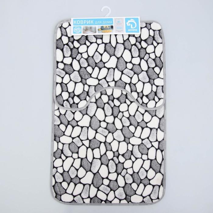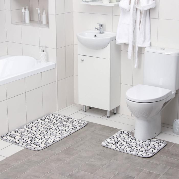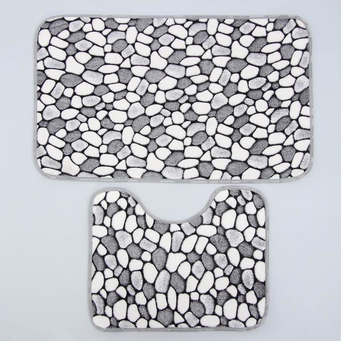 Набор ковриков для ванны и туалета Доляна «Галька», 2 шт: 45×50, 50×80 см