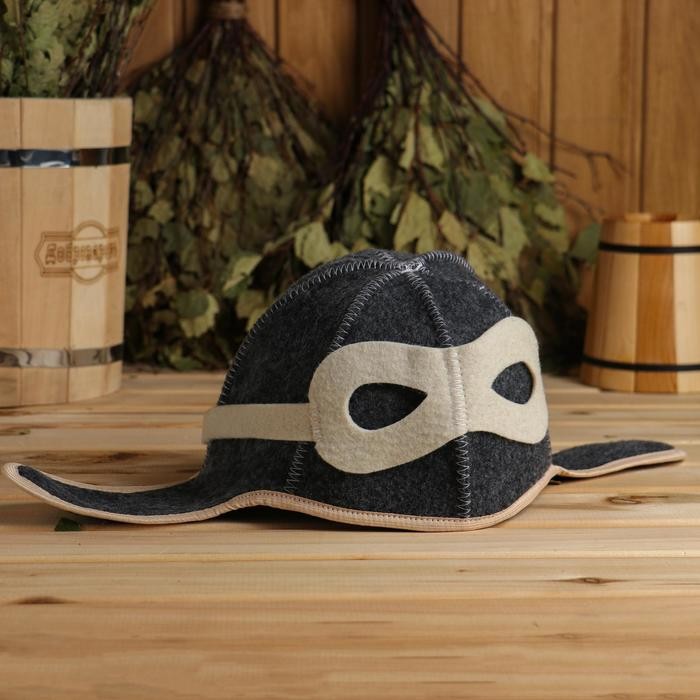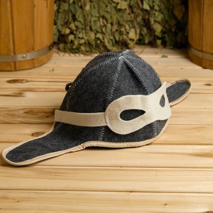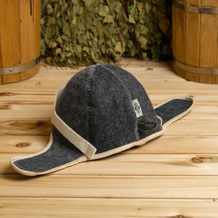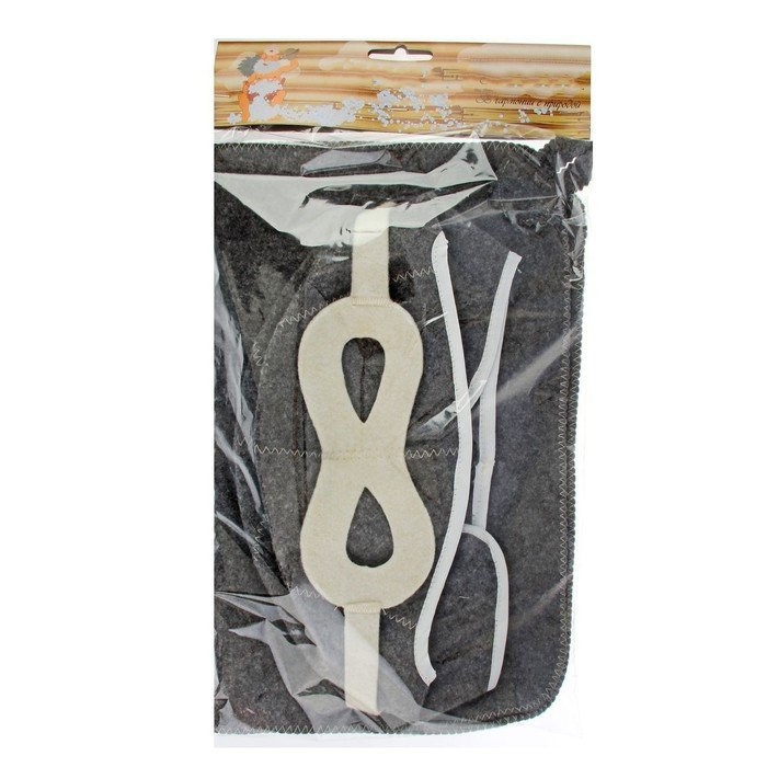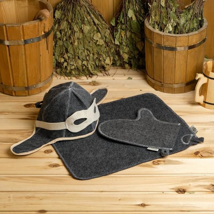Набор для бани «Летчик» серый: шапка, коврик, рукавица