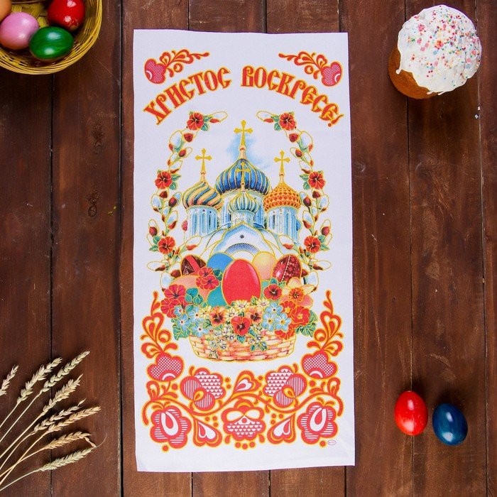 Рушник — один из самых древних и символичных предметов, дошедших до наших дней и не потерявших своего назначения. Пасхальный рушник (или салфетка) появился с принятием христианства на Руси. На нём изображены красивые православные храмы, религиозная символика и надписи «Христос Воскрес».