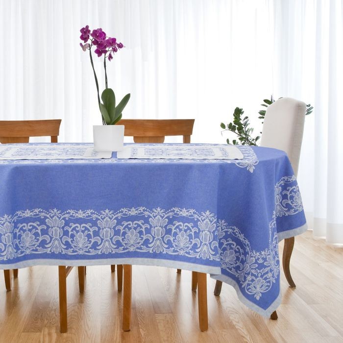 Столовый набор «Этель» (скатерть 150×300 см, салфетки 45×45 см — 12 шт.) цвет синий, хл. с ВМГО