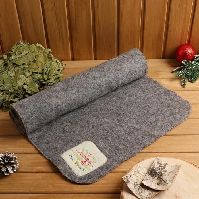 Банный коврик-лежак из войлока с оригинальной вышивкой отлично впитывает влагу и защищает тело от жара полок. Аксессуар выполняет также и гигиеническую функцию, что немаловажно при походах в общественные заведения. Лежак пригодится поклонникам классической русской бани и тем, кто предпочитает сухой жар финской сауны.