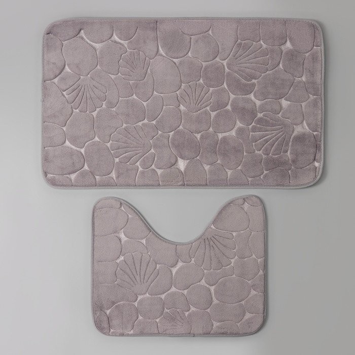 Набор ковриков для ванны и туалета Доляна «Галька, ракушки», 2 шт: 40×50, 50×80 см, цвет бежевый
