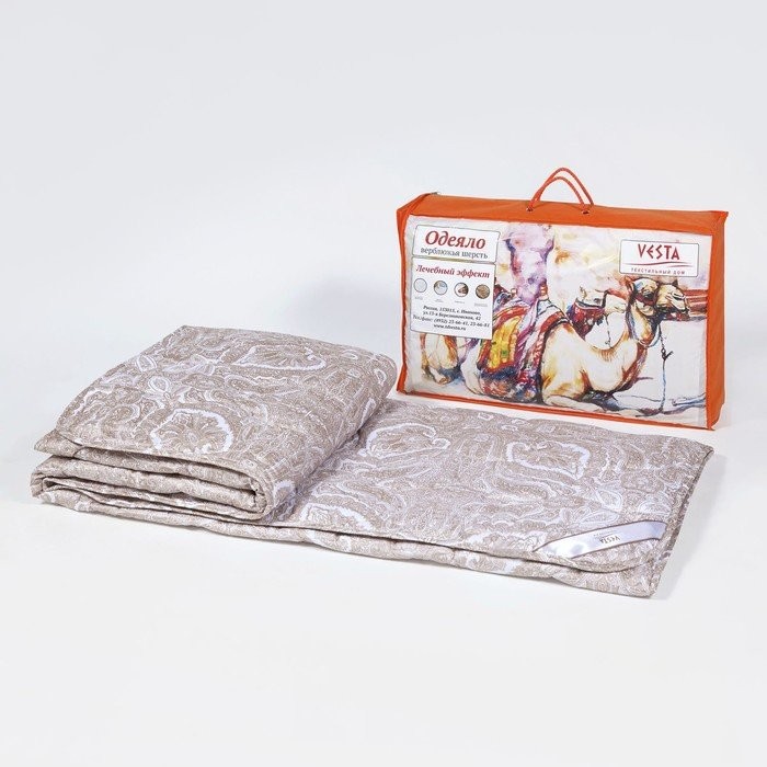 Одеяло облегченное 140×205 см, шерсть верблюда, ткань тик, п/э 100%