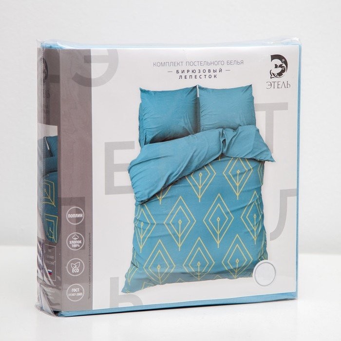 Постельное бельё Этель 1,5 сп «Бирюзовый лепесток» 143х215см, 150х214см, 70х70см-2 шт