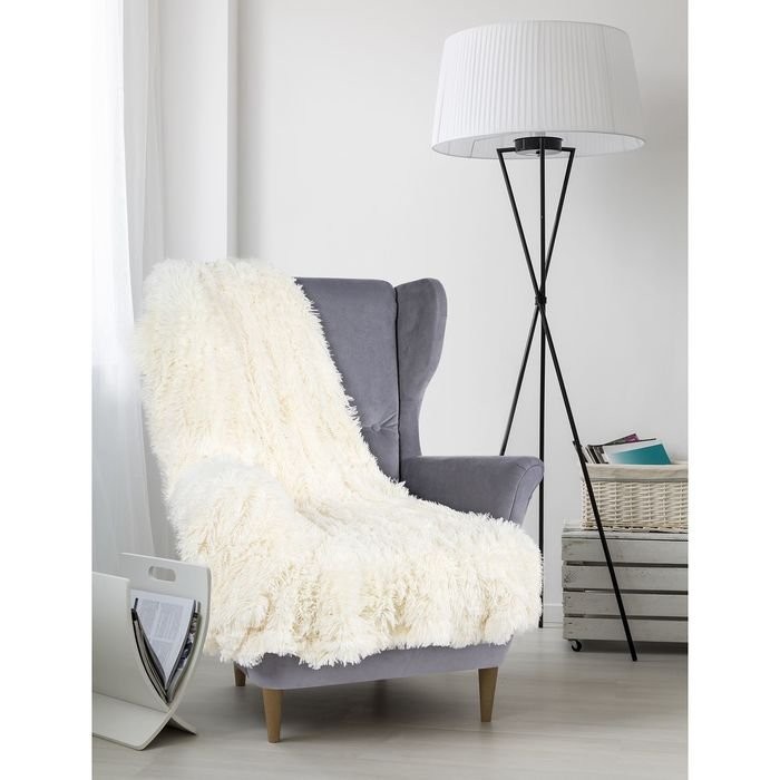 Плед мех «Шиншилла», двухсторонний, 240×220 см, кремовое