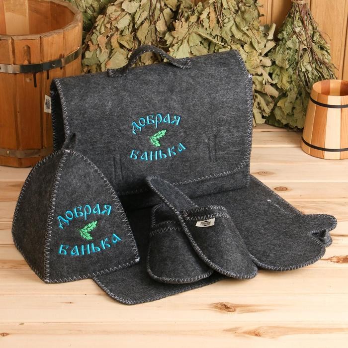Для комфортного отдыха в парной возьмите с собой набор банных принадлежностей. Предметы из этого комплекта предохраняют тело от перегрева и являются средствами индивидуального пользования. Влажные изделия рекомендуется сушить в расправленном виде на горизонтальной поверхности. Принадлежности из войлока и фетра стирайте вручную при температуре воды 30 °C.
