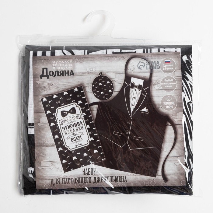 Кухонный набор 3 пр. «Джентльмен», фартук 60×70 см, прихватка 20×20 см, полотенце 35×60 см