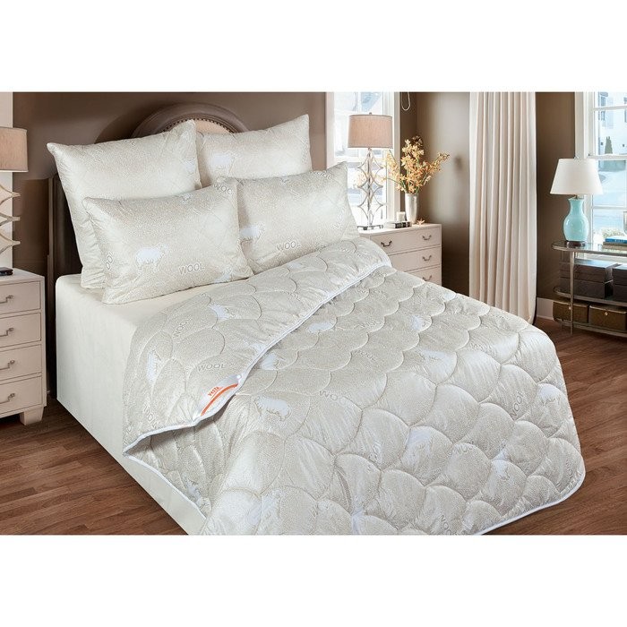 Одеяло зимнее 172×205 см, шерсть мериноса, ткань глосс-сатин, п/э 100%