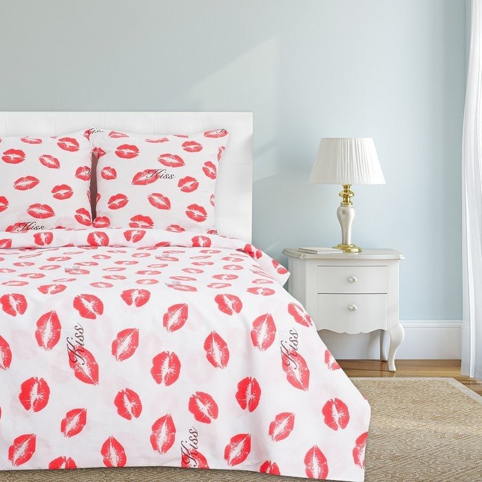 Постельное бельё «Этель» дуэт Яркий поцелуй 143×215 см — 2 шт., 240×220 см, 70×70 см — 2 шт., 100% хлопок, бязь 125 г/м²