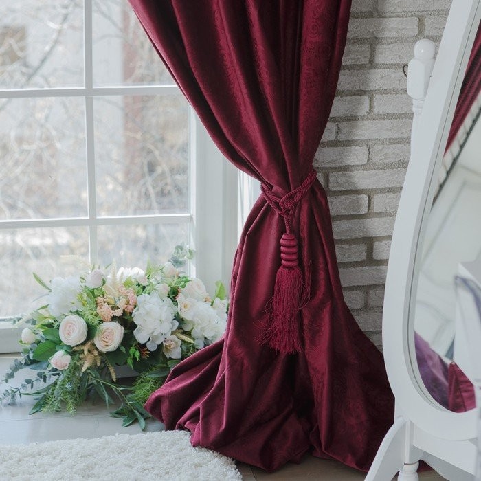 Штора портьерная «Этель» 230×270 см Валенсия Вишнёвый,100% п/э