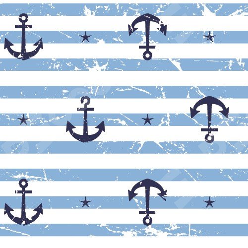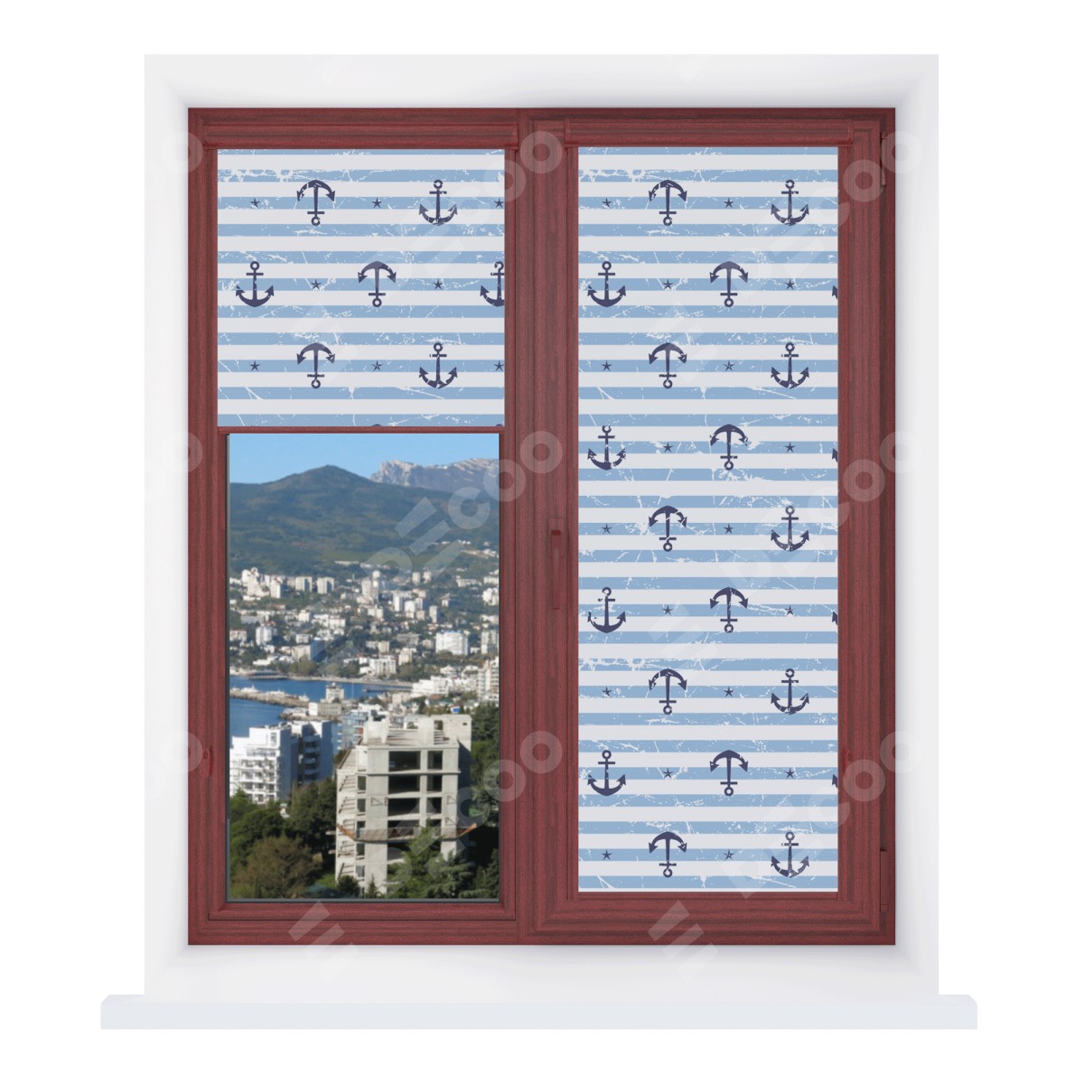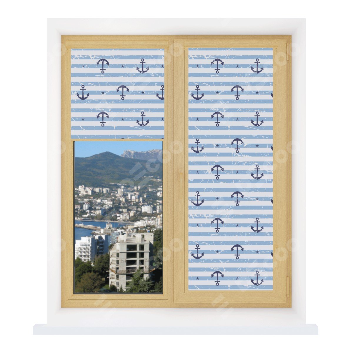 Рулонная штора Уни 2 с принтом Полоски и якори отлично подойдёт для интерьера: ванная, детская и для общественных мест.