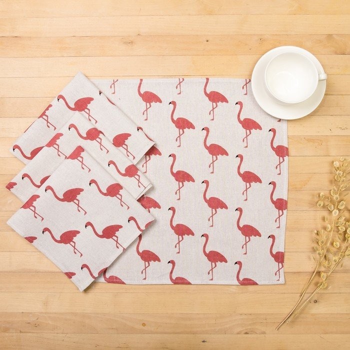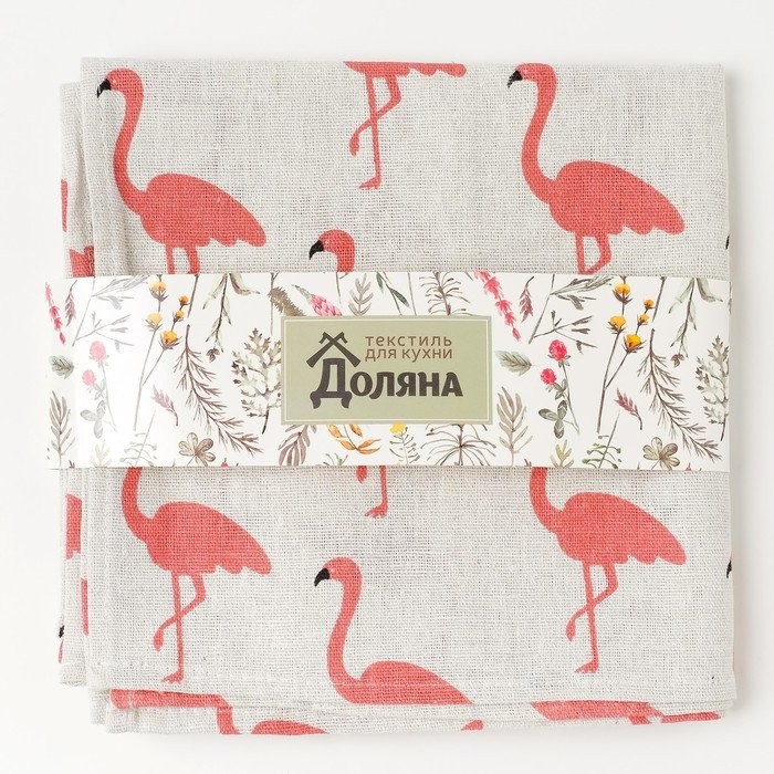 Набор салфеток Доляна 40х40см 4шт, Фламинго, 100%пэ, рогожка 200 гр/м