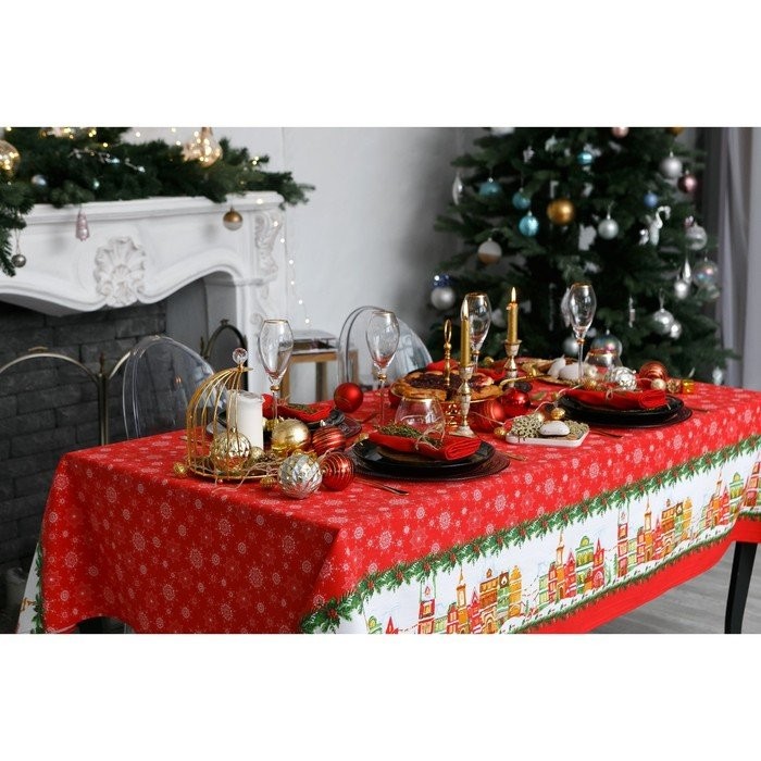 Скатерть Доляна «Новый год: Волшебный город» 180×149 см, 100% хлопок, 164 г/м2