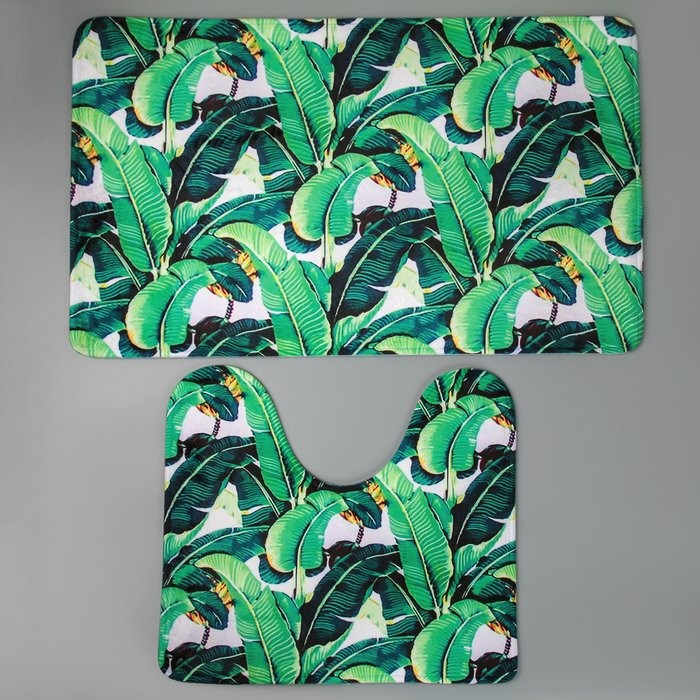 Набор ковриков для ванны и туалета Доляна «Тропики», 2 шт: 40×45, 45×75 см