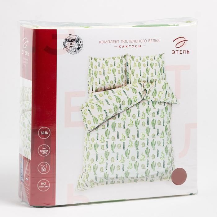 Постельное бельё «Этель» евро Кактусы 200×217 см, 240*220 см, 70×70 см — 2 шт., 100% хл, бязь 125 г/м²