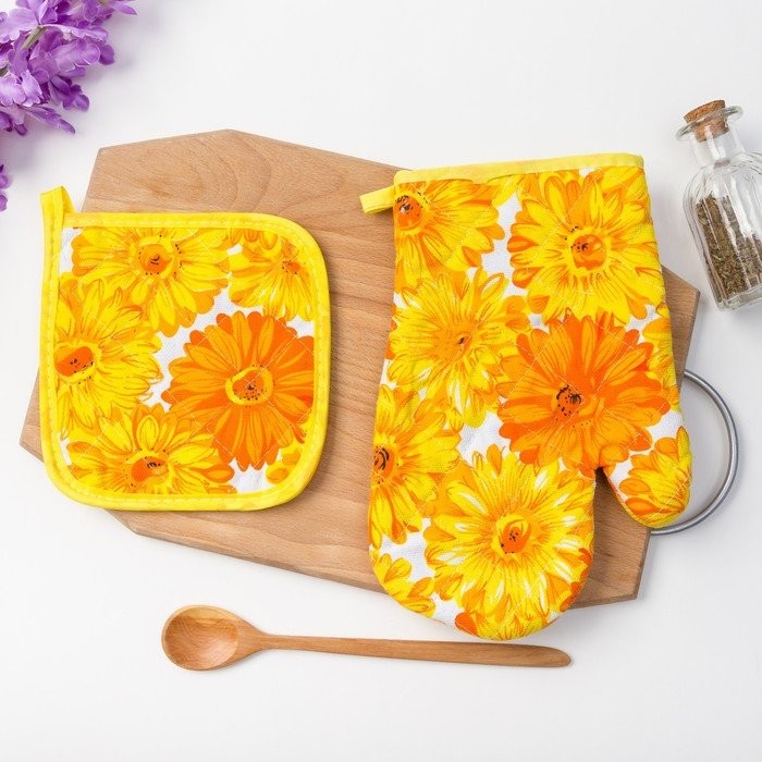 Кух. набор 2 пр. Доляна"Cолнечный»,прихватка 17×17 см, рукавица 26×16 см,100% п/э