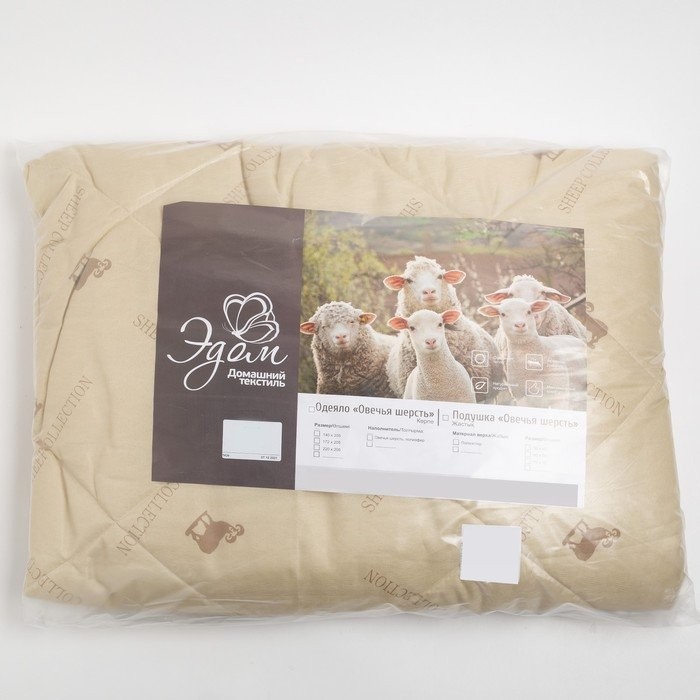 Одеяло Овечья шерсть 220×205 см, полиэфирное волокно 200 гр/м, пэ 100%