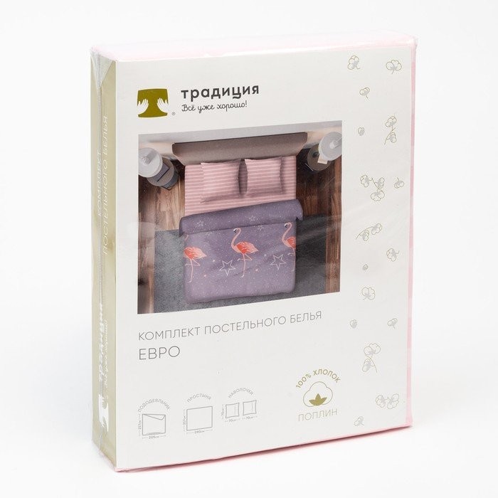Постельное бельё Pastel «Фламинго», дуэт, 147×217 — 2 шт., 220×240, 70х70см. — 2 шт., поплин