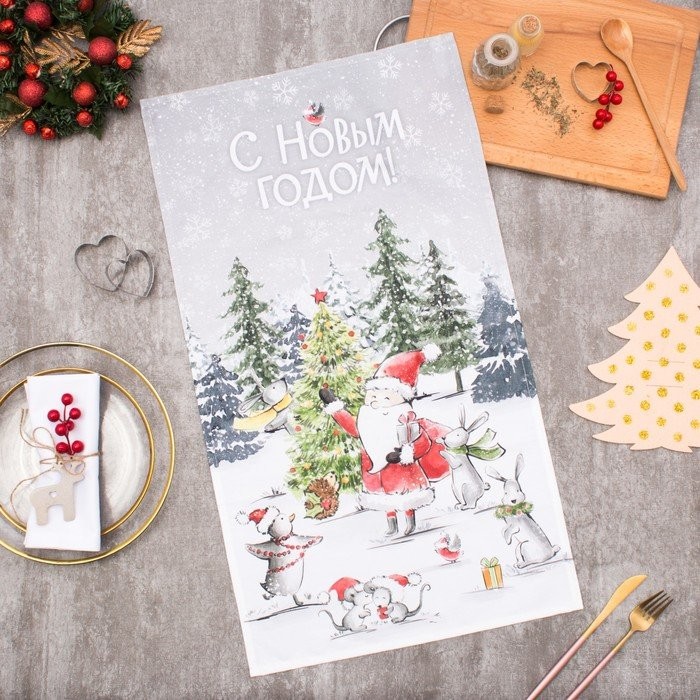 Полотенце «Этель» Праздник в лесу 40х70см,100% хл, саржа 190гр/м2