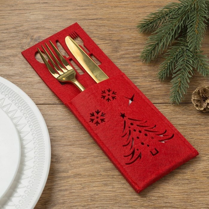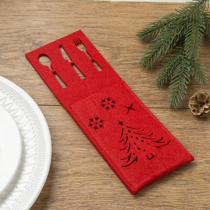 Конверт для столовых приборов Доляна «Новый год», цвет красный, 25×8, 5 см