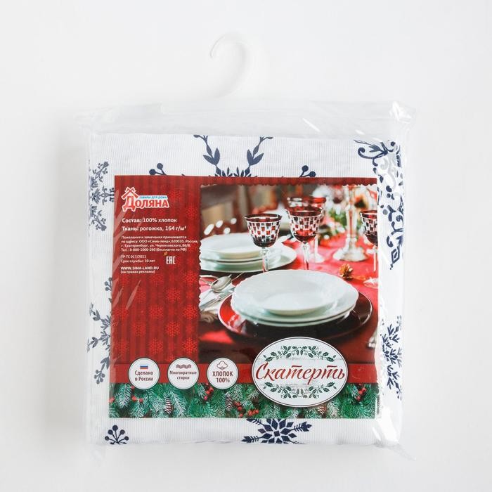 Скатерть Доляна «Новый год: Синие снежинки» 180×149 см, 100% хлопок, 164 г/м2