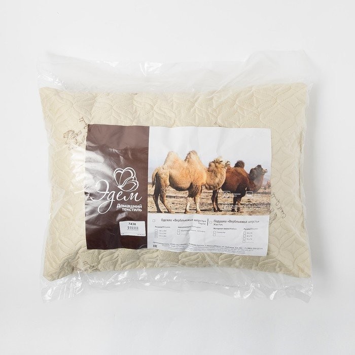 Подушка Верблюжья шерсть 50×70 см, полиэфирное волокно, пэ 100%