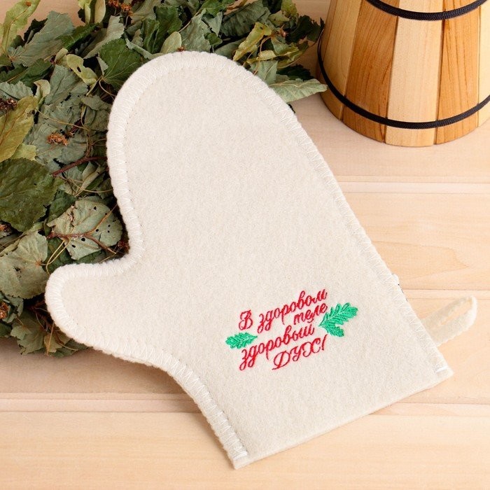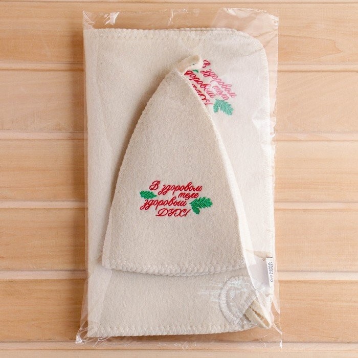Для комфортного отдыха в парной возьмите с собой набор банных принадлежностей. Предметы из этого комплекта предохраняют тело от перегрева и являются средствами индивидуального пользования. Влажные изделия рекомендуется сушить в расправленном виде на горизонтальной поверхности. Принадлежности из войлока и фетра стирайте вручную при температуре воды 30 °C.