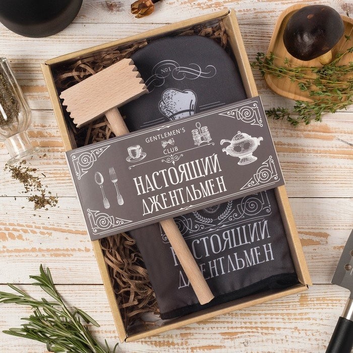 Кухонный набор «Джентльмен»,варежка-прихватка 20х28см, молоток деревянный