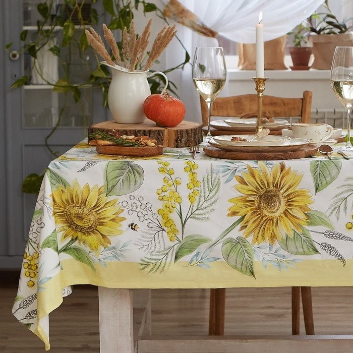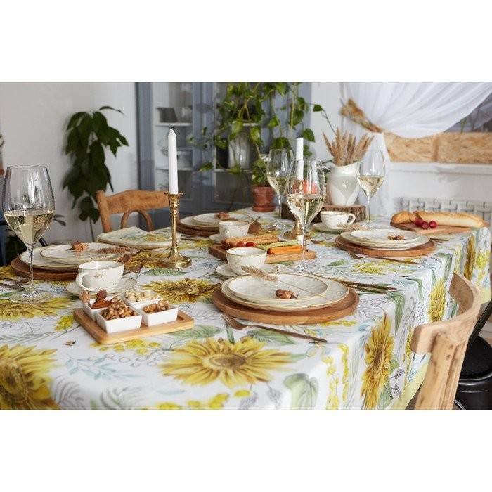 Скатерть «Этель» Солнечные цветы 220×147 см, 100% хлопок, саржа 190 г/м2