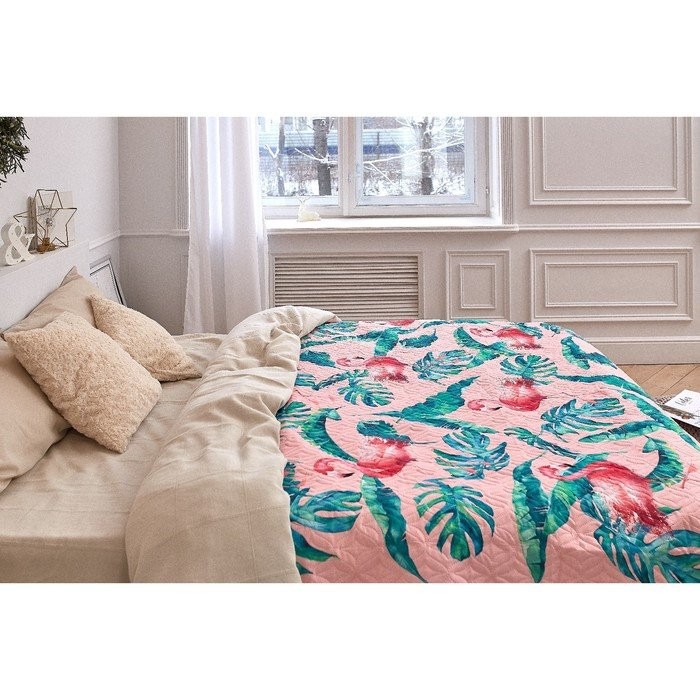 Покрывало «Этель» евро Tropical flamingo, 190*205 см, микрофибра