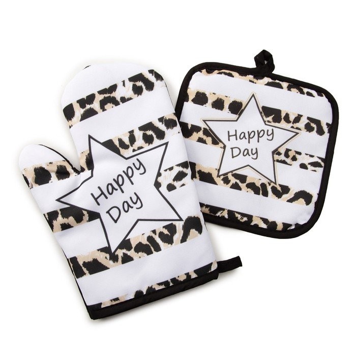 Кухонный набор (2 предмета) Этель LoveLife Happy, прихватка 17×17 см, рукавичка 26×16 см, 100% п/э