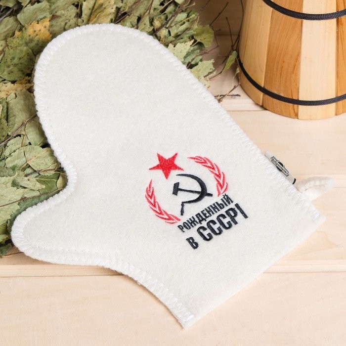 Набор банный 3 предмета «Рожденный в СССР, серп и молот», белый, в плёнке