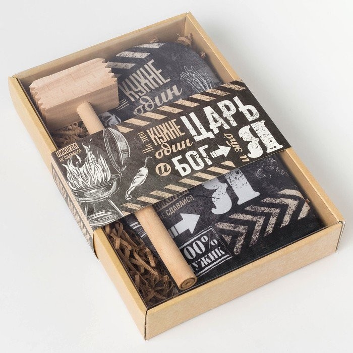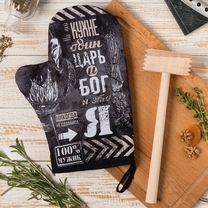 Кухонныйнабор «Царь на кухне», варежка-прихватка 20х28см, молоток деревян.