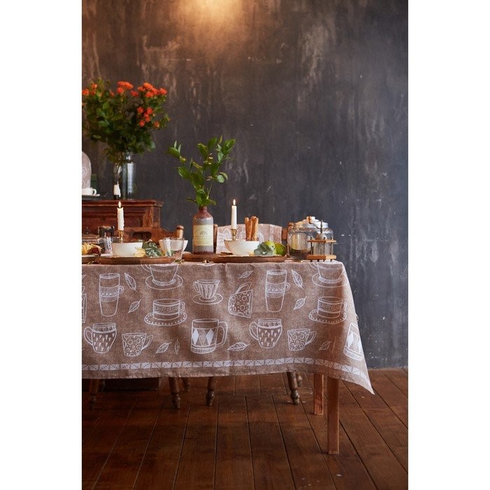 Скатерть «Доляна» Cup of tea 220×144 см, 100% хлопок, 164 г/м2