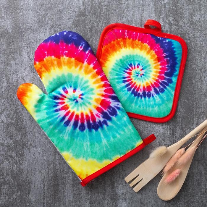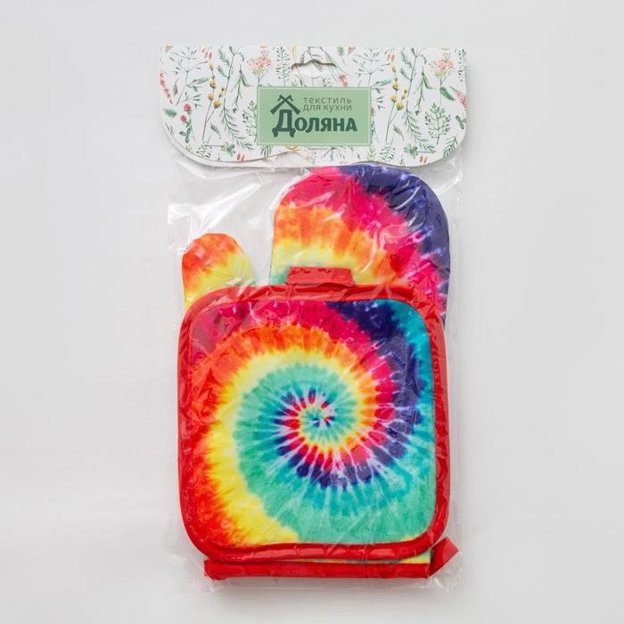 Кухонный набор Доляна «Радуга» прихватка 17×17 см, рукав 26×16 см, 100% п/э
